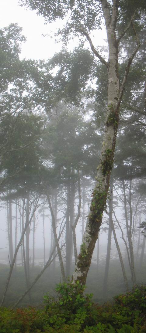It was misty in the morning, sunny in the afternoon. I got my first flat tyre near Queets.
