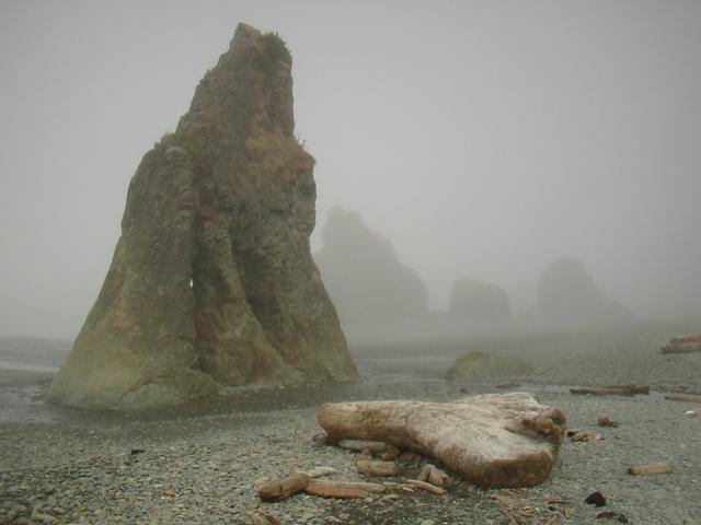 I left the hostel around 9:15 and continued south along US 101. I soon found the Ruby's Rest geocache at Ruby Beach. Somewhere along the way I lost one of my sandals, which I had strapped to the side of my panniers. It's too bad, because I do attach some sentiment to those sandals which have been with me since before my trip to India. Objectively, it's not that big a deal, since they're getting close to the end of their life anyway. Later in the day, I lost the other sandal.