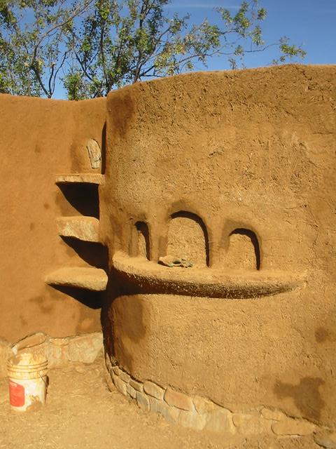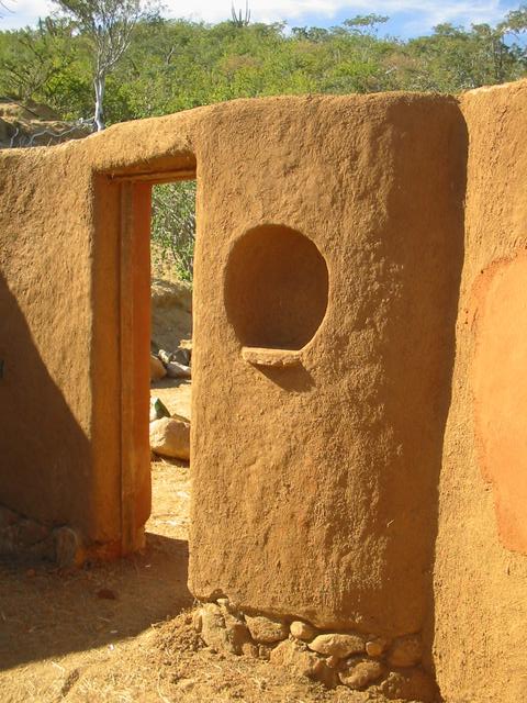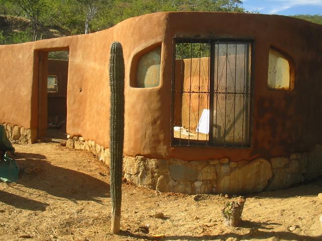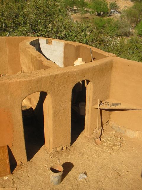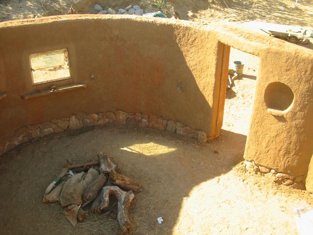 I worked on the cob house until Monday. Pretty-much all the detail work was done, a bit of plaster prep left to do, and plastering was going on all over the house. Lots of family members were helping out to do the plastering. I took a bunch of final pictures, including pictures of many of the details, on Sunday afternoon.