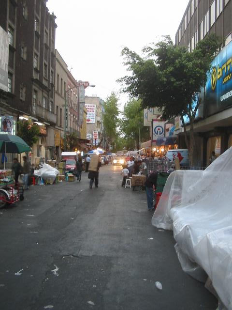 We waited in the bus station until 5:30 (actually 6:30) and then cought the metro to the Zocalo, and checked into the same hostel I've been in the other two times I've been in the city. They provided a free breakfast, which was the first real food I'd had in a couple of days and I just about ate two of everything available. My plan for the day was to see as much art as I could near to the historical centre of town. Carl wanted to see some of that and also the anthropological museum, so we took the metro to Bosque de Chapultepec, a large wooded park area that houses several museums. First we visited the Museo de Arte Moderno, which I'd seen before but wanted to return to because of the Remedios Varo (one of my favorite painters) paintings there. It also had a memorial exhibition for an artist who's name I forgot to write down but really enjoyed (I'll find out later who he was), which unfortunately was still in the process of being set up and mostly closed. After the museum both of us realized we were too tired to really take anything in, and I realized I'd left my guidebook at the hostel, so we walked back to the Zocalo along Paseo de Reforma (one of Mexico's main boulevards) and through Zona Rosa. There was a book of all of Remedios Varo's paintings I'd wanted to buy at the museum, but I didn't have enough cash on me, so I took the metro back and bought the book, then checked out some markets on the way home. It seems like every time I'm in Mexico City, half the streets are torn open for some kind of roadwork, and this time it was the road going to the hostel that was torn up. While checking my e-mail there, there was a loud bang outside and then some very loud and bad electrical noises, and a fire in the street. The lights flickered a bit and the fire kept going for a good 10 minutes. Mayb something had shorted out due to the rain that started in the late afternoon. What surprised me was that this happened right next to the national palace, but nobody showed to look at it, especially considering there had been a massive bomb attack in Madrid on the same day day.
