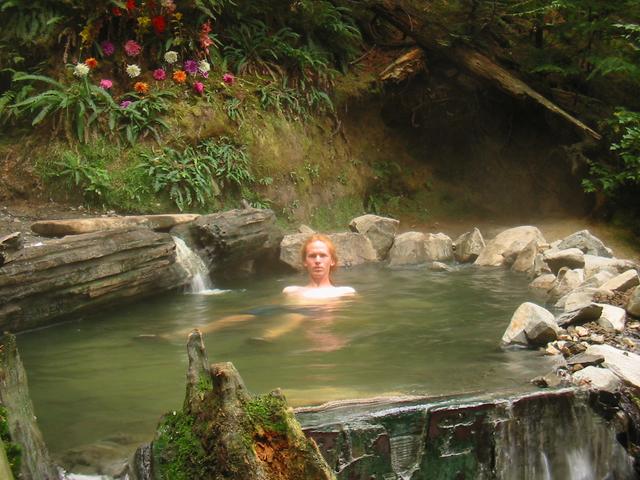 I got up around 7 and went to the hot springs again, this time exploring the trail further. I think I reached the last pool, which is certainly one of the most beautiful, largest, and deepest. The bottom of the pool was covered in carpets, and someone had planted flowers nearby. I think I spent altogether an hour and a half there. After breakfast, I finally was on my way at 11 and returned to US 101, continuing west.