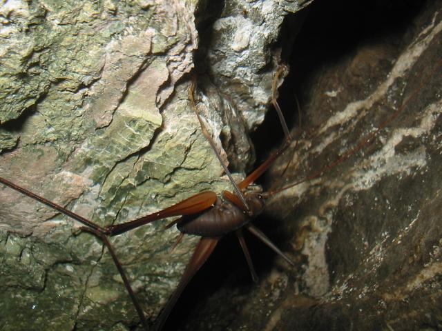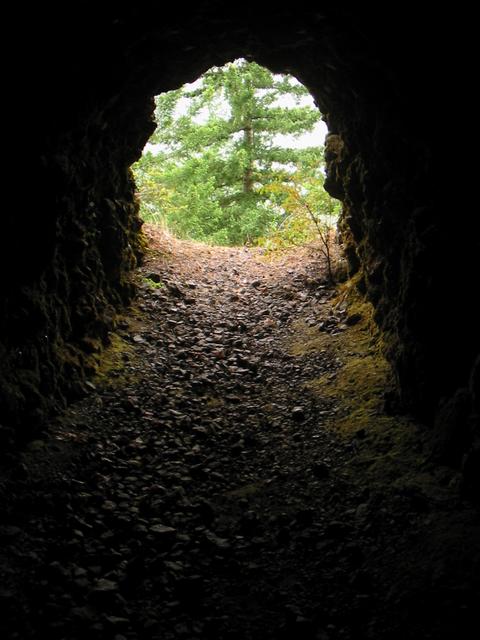 I stopped shortly after reaching the west end of Crescent Lake to find the Manganese Mines geocache. This was the most difficult geocache I've ever had to find, and involved climbing a long way up slag at a 45 degree angle. I nearly went rolling/sliding down the hill many times, and near the top I also got to contend with a nearby cliff. I only reached one of the mines, but it was interesting to explore a bit. The bats startled me all the time, especially when I swung my flashlight (I bought one in a store along the way) and suddenly a few would fly right by my head. There were some interesting insects in the cracks as well. Once I got a few hundred metres in, I started hearing some strange sounds and things were starting to feel too much like Moria, so I got out of there.